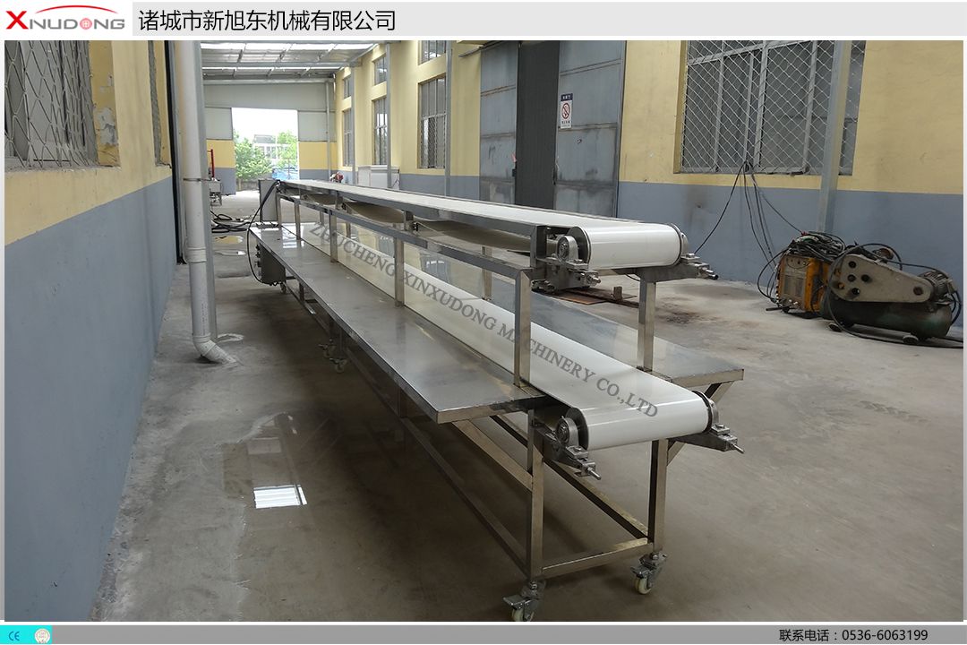 輸送機與餃子皮機(包子、燒麥)配套可成為餃子(包子、燒麥)生產線。注:可根據客戶需求定做